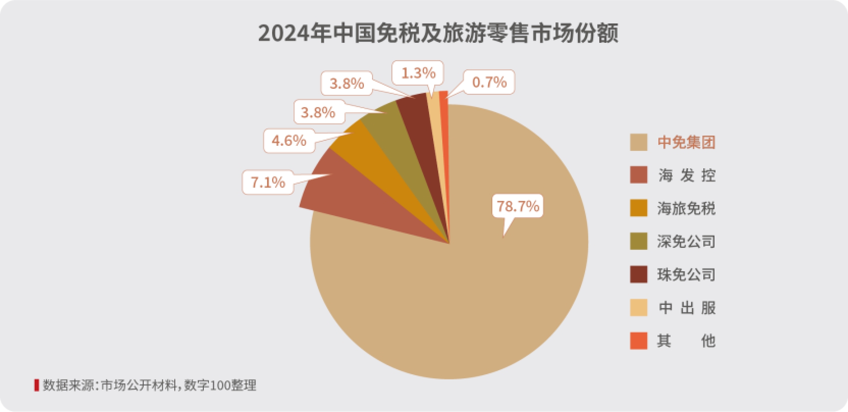 图源:《2024-2025中免消费白皮书》 同时,中国GDP在阶段性调整后回归健康增长,政策效应与内需扩大共同稳住消费者信心,为国内旅游零售行业提供了坚实的发展土壤,尤其是在海南离岛免税政策与市内免税店政策的深度推进下,国内外旅游增长、入境消费提升正在持续推动国内市场扩容。 市场行业集中度持续走高,印证全渠道生态价值 伴随国内市场的复苏,中国旅游零售行业的资源整合态势愈发明显,头部企业的聚合效应持续凸显,行业集中度呈稳步提升趋势。白皮书显示,在全渠道布局、供应链、会员价值经营、资本与科技驱动等优势的综合带动下,中免集团以78.7%份额持续巩固行业龙头地位,围绕首店经济、新品首发、全域营销、服务升级协同发力,构建起多层次、强体验的“免税+文旅”消费新生态,在过去一年与众多合作伙伴一起实现了更高质量的发展。